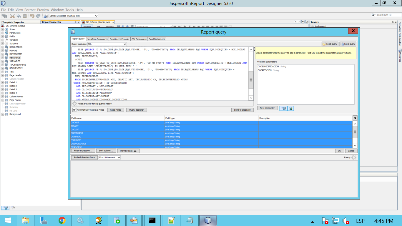 SE REALIZA UN AJUSTE EN EL SCRIPT DEL DOCUMENTO DE JASPER EN EL APARTDO DE RECURSOS: